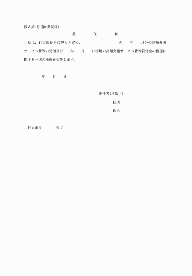 (2) 高額介護サービス費等の受領に関する委任状(様式第3号。以下「委任状」という。)