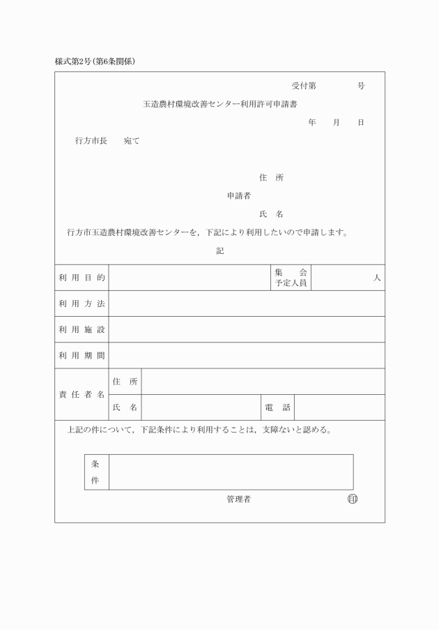 ○行方市玉造農村環境改善センター条例施行規則