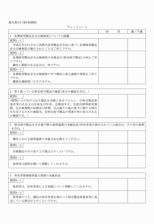 3 検査員は,立入検査を実施するに際し,チェックシート(様式第4号)により被検査者の認識を調査するとともに,必要な説明をしなければならない。