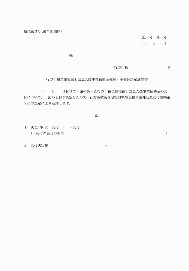○行方市被災住宅復旧緊急支援事業補助金交付要綱