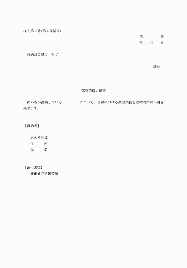 4 収納対策課長は,徴収業務が完了したときは,徴収業務完了通知書(様式第5号)に滞納整理簿を添付し,債権所管課長へ通知するものとする。