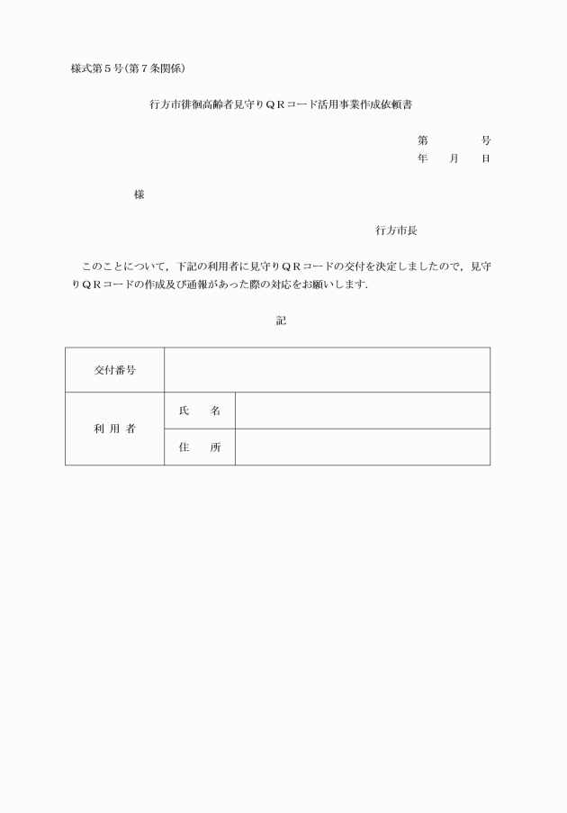 ○行方市徘徊高齢者見守りQRコード活用事業実施要綱