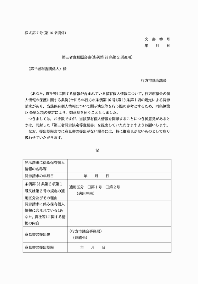 第三者意見照会書 | ||